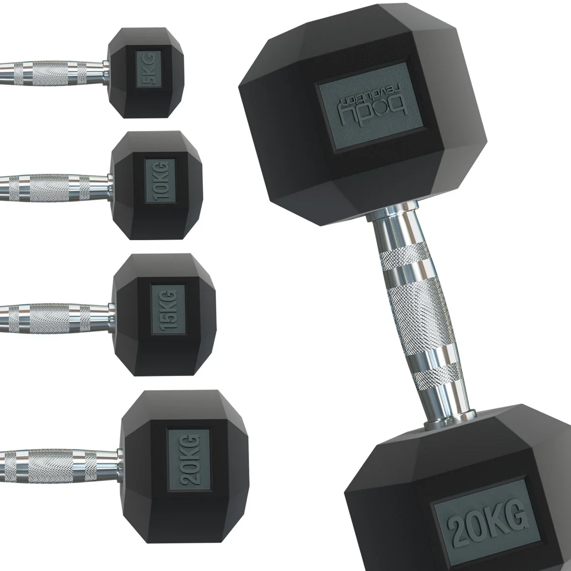 Disponibles en varios pesos, las mancuernas hexagonales de Body Revolution permiten incrementar la carga progresivamente según mejoras tu fuerza. Son perfectas para quienes entrenan en casa y buscan calidad profesional sin necesidad de un gimnasio completo. Gracias a su diseño inteligente y estructura robusta, son una inversión segura para cualquier entusiasta del fitness.
