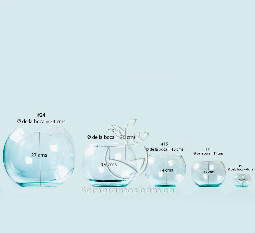 Bola de vidrio con diámetro de boca 15 cms y una altura de 14 cms para poner tus plantas de interior.