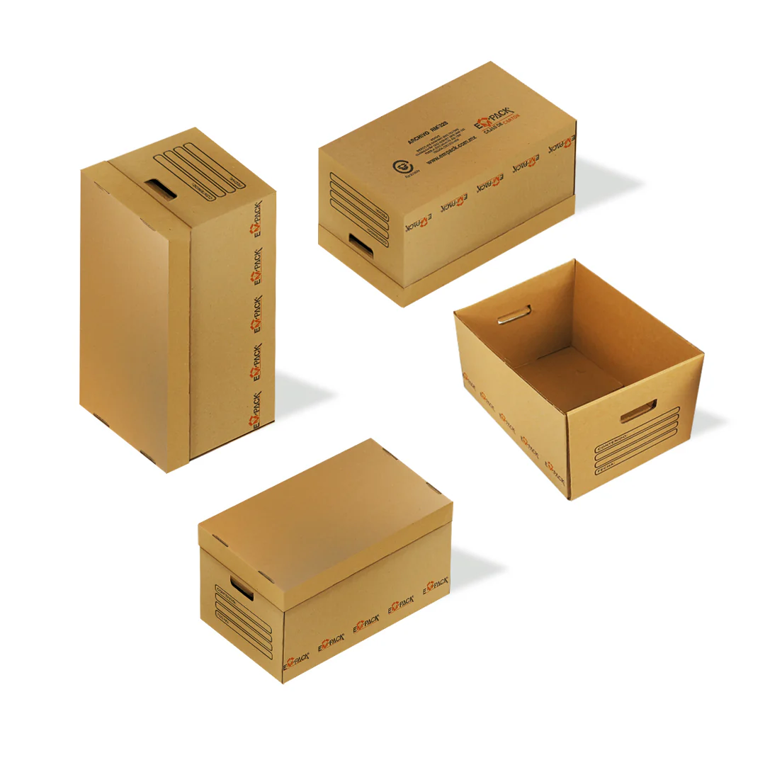 - Material: cartón liner kraft flauta “C”, color café.