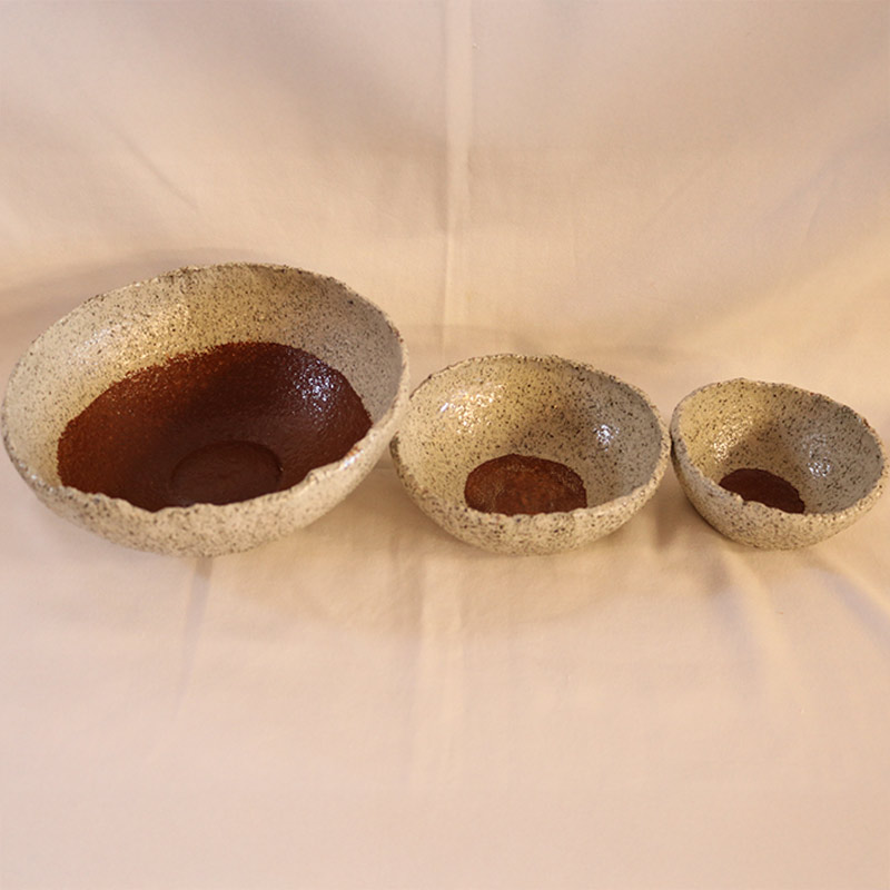 Piezas hecha con gres de alta temperatura con esmalte libre de plomo, aptas para contener alimentos o bebida.