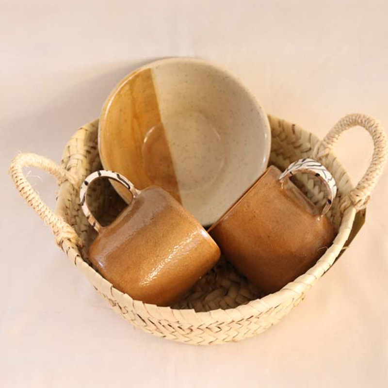 Piezas hecha con gres de alta temperatura con esmalte libre de plomo, aptas para contener alimentos o bebida.
