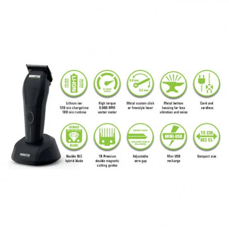 La Monster Cerberus Clipper Black es la herramienta ideal para quienes buscan una máquina potente, duradera y confiable. Su diseño ergonómico y la posibilidad de usarla con o sin cable la convierten en un aliado imprescindible para el profesional del cabello moderno.
