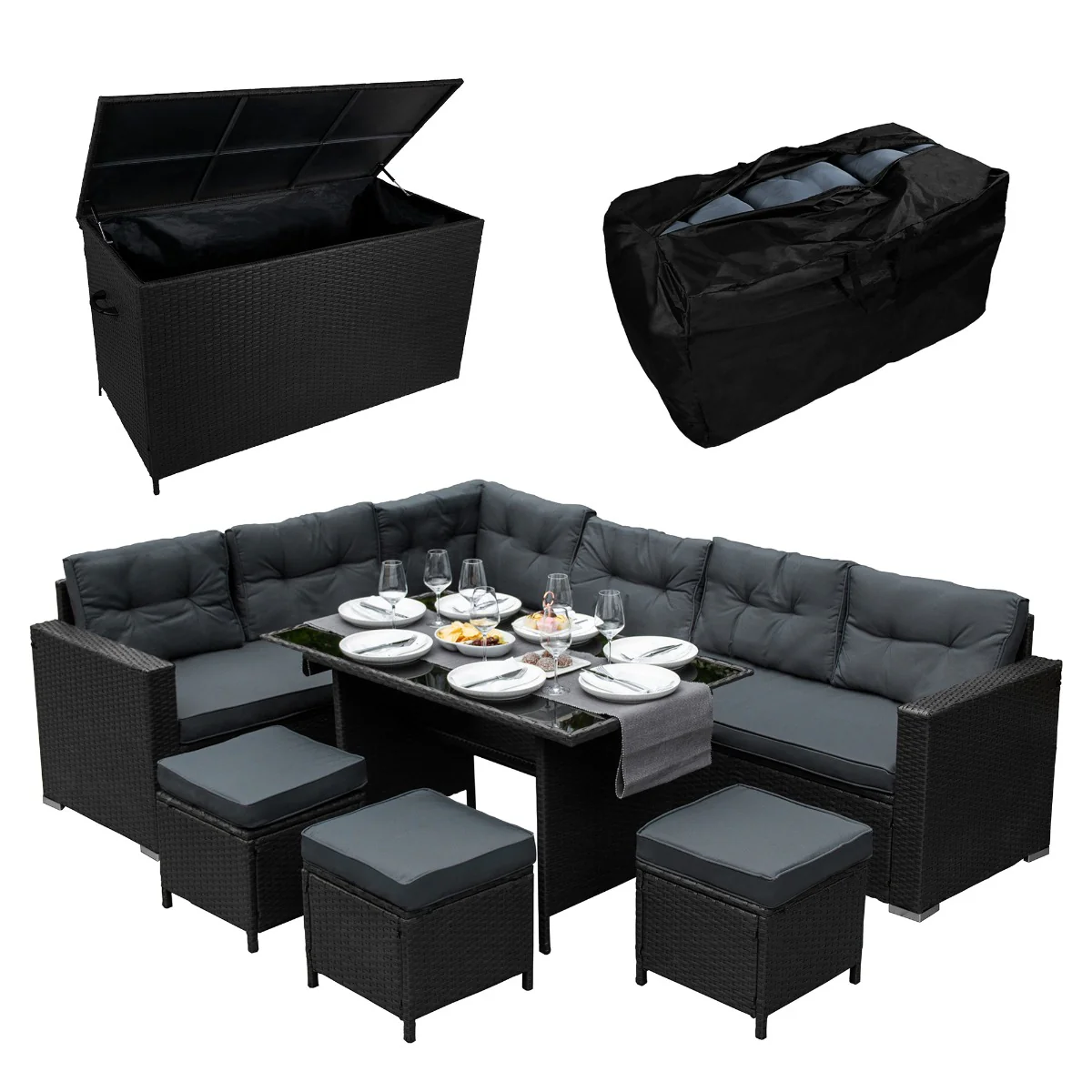 Transforme su espacio al aire libre en un refugio de estilo, comodidad y organización con nuestro conjunto de sofá esquinero de ratán y caja de almacenamiento para jardín.
