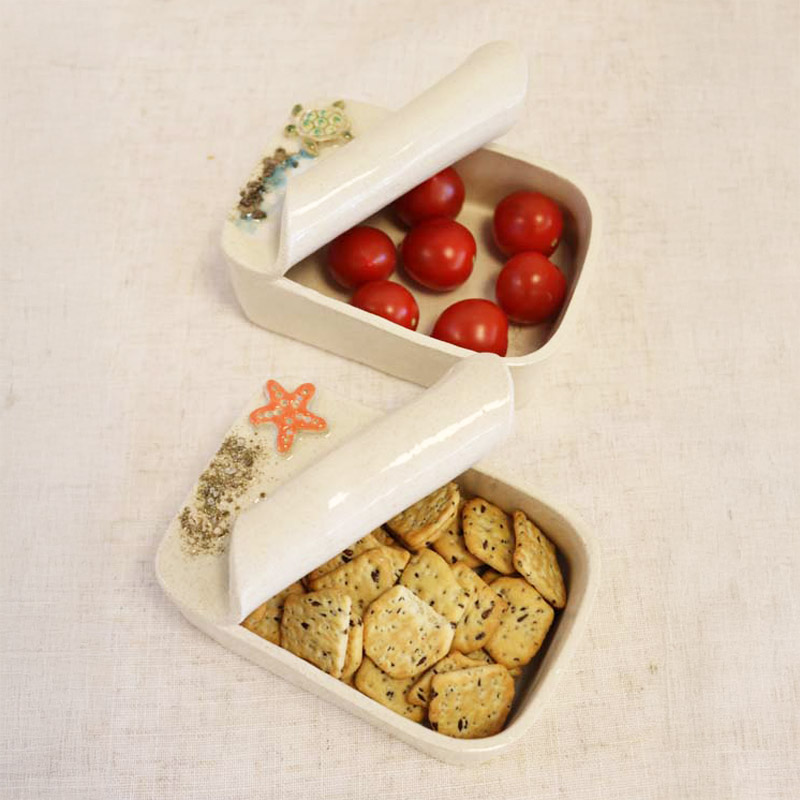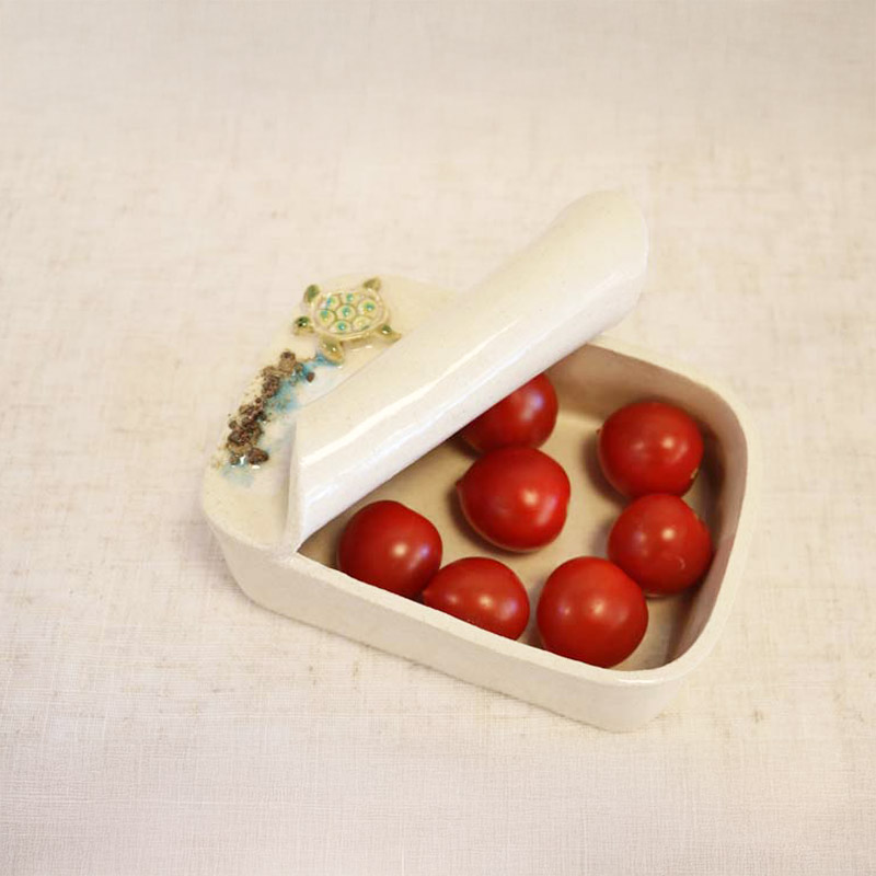 Pieza hecha con gres de alta temperatura con esmalte libre de plomo, apta para contener alimentos o bebida.