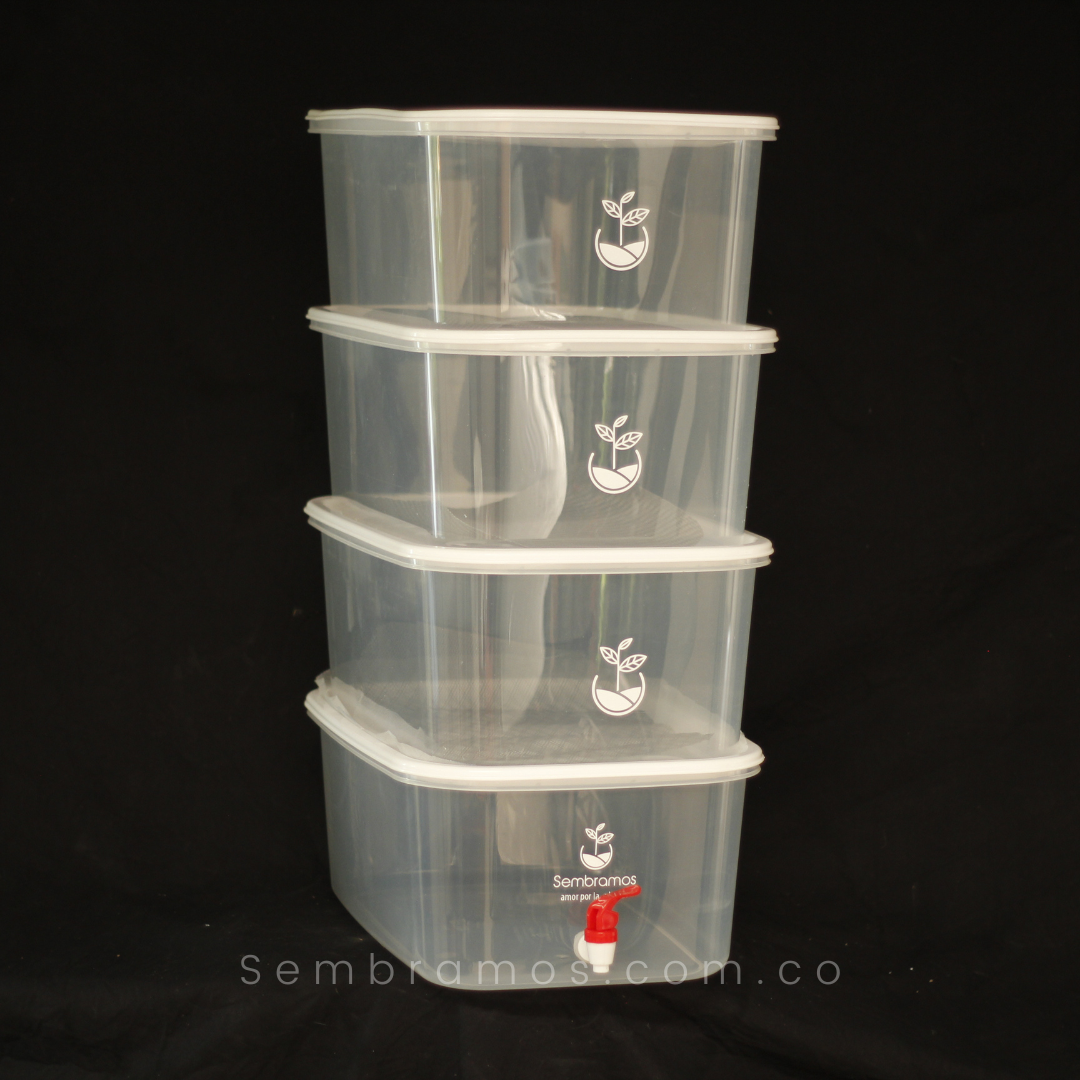 - 3 mallas plásticas que permiten el desplazamiento de las lombrices.