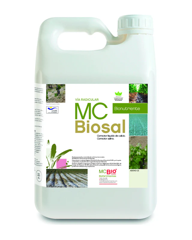Corrector líquido de suelos salinos, sódicos y de aguas salinas. MC BIOSAL es un producto especialmente diseñado para favorecer el correcto funcionamiento de los suelos, fomentando un desarrollo óptimo de los cultivos.