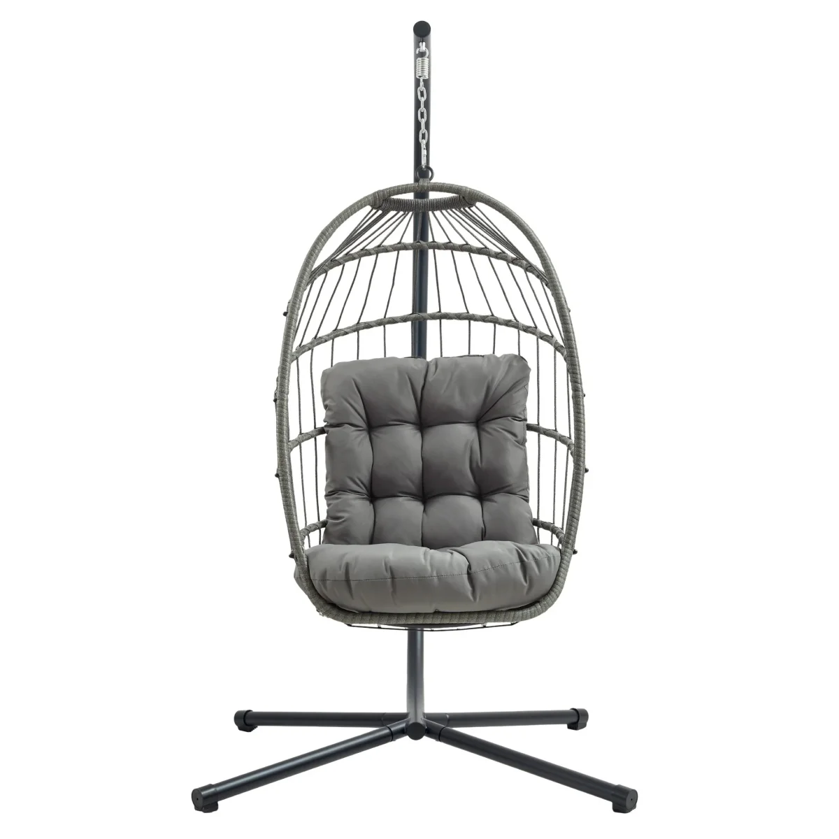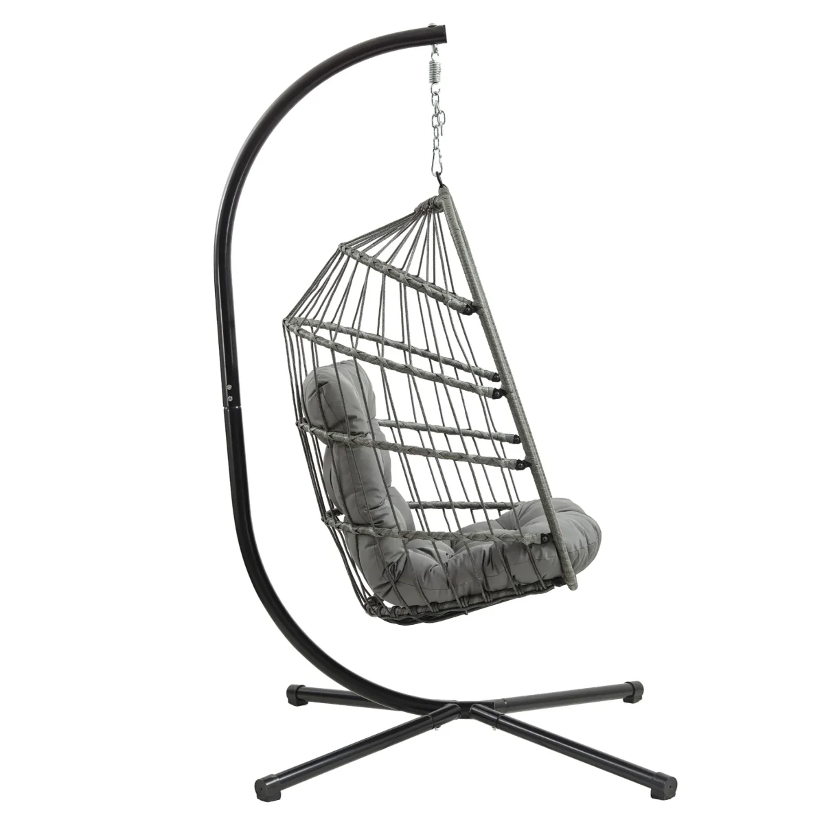 Las características prácticas hacen que esta silla colgante sea aún más conveniente para el uso diario. Su diseño plegable permite un almacenamiento más fácil cuando no se utiliza, mientras que la funda impermeable incluida ayuda a proteger la silla. Diseñada con cremallera para un ajuste y retirada sin esfuerzo, la funda facilita mantener la silla limpia y protegida todo el año. Con capacidad para una persona y una altura del asiento de 45 cm desde el suelo, esta silla tipo huevo es ideal para cualquiera que quiera elevar su espacio de relajación.