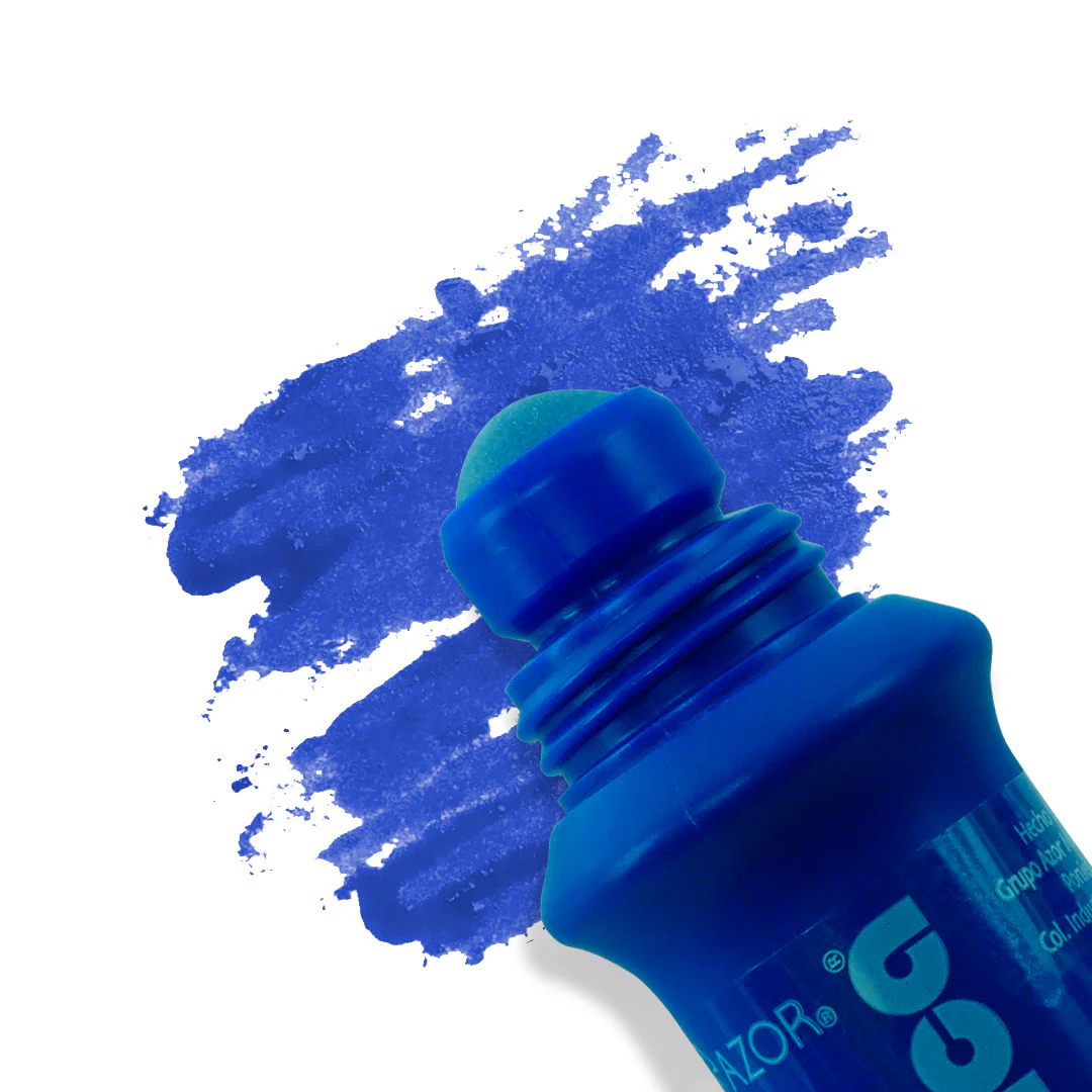 Tinta Azor Rolaplica con sistema roll-on para recargar cojínes, sin escurrimientos y un mayor rendimiento de tinta.